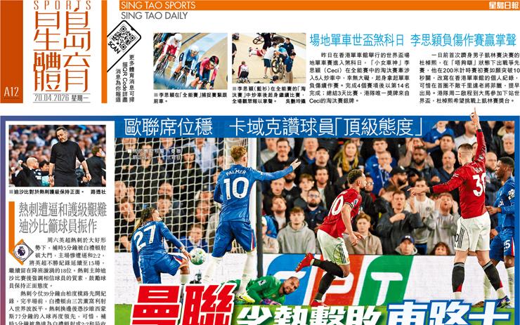 曼聯 劣勢擊敗車路士 歐聯席位穩 卡域克讚球員「頂級態度」