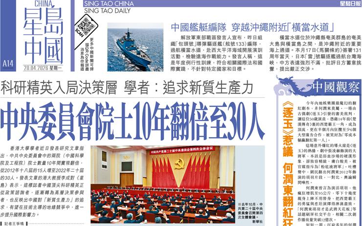中央委員會院士10年翻倍至30人 科研精英入局決策層學者:追求新質生產力