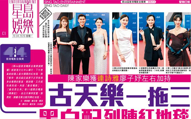 古天樂一拖三 黑白配列陣紅地毯 陳家樂獲連詩雅廖子妤左右加持
