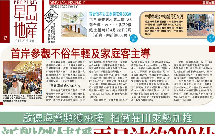 新盤銷情穩兩日沽約290伙 啟德海灣頻獲承接 栢傲莊III乘勢加推