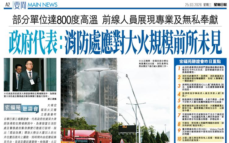 政府代表:消防處應對大火規模前所未見 部分單位達800度高溫前線人員展現專業及無私奉獻