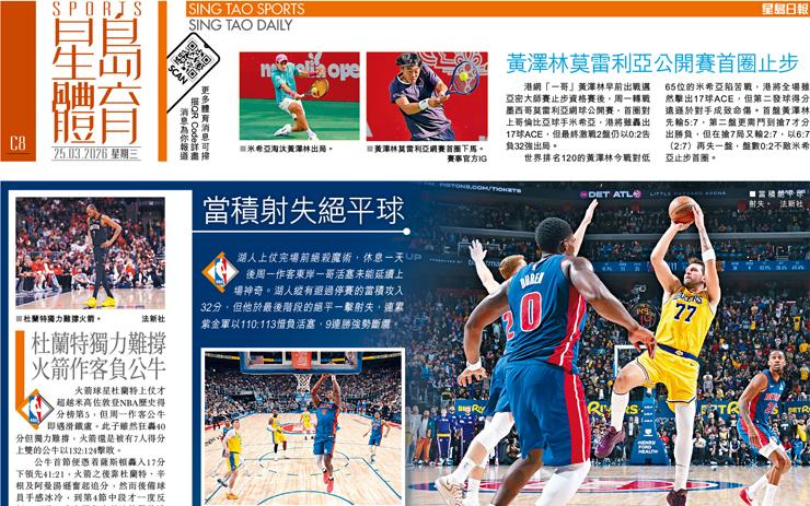 湖人9連勝斷纜 當積射失絕平球