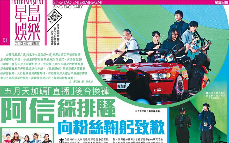 阿信綵排騷 向粉絲鞠躬致歉 五月天加碼「直播」後台換褲