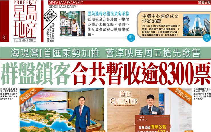 群盤鎖客合共暫收逾8300票 海灣I首匯乘勢加推 薈淳映居周五搶先發售