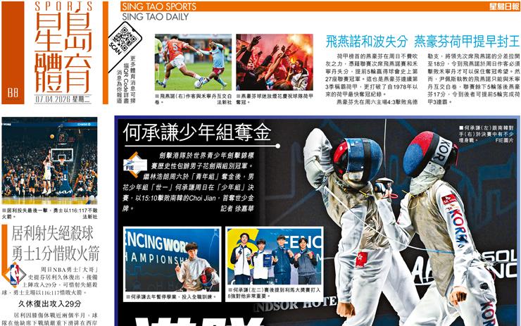 港隊 包辦世青男花 雙冠 何承謙少年組奪金
