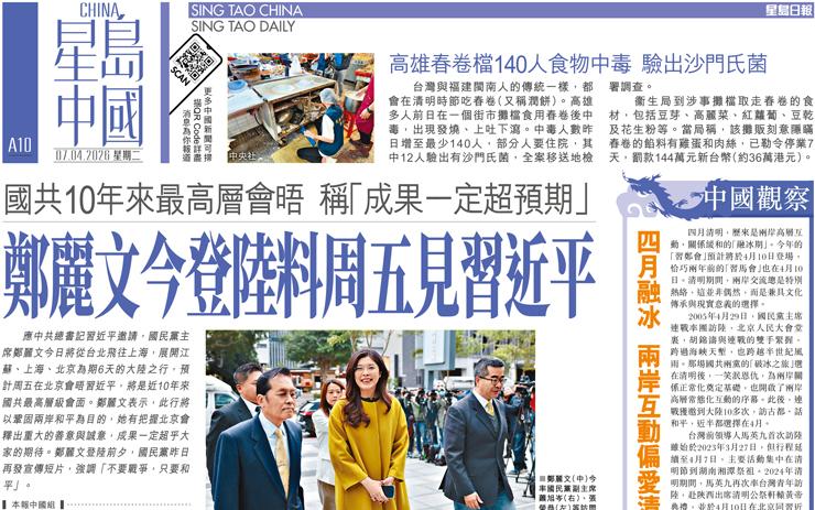 鄭麗文今登陸料周五見習近平 國共10年來最高層會晤稱「成果一定超預期」