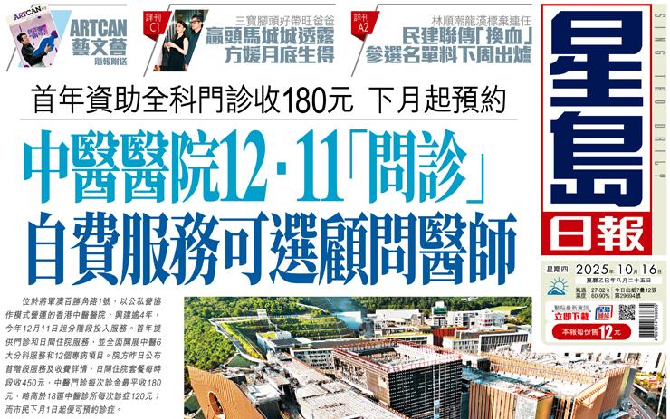 中醫醫院12·11「問診」 自費服務可選顧問醫師 首年資助全科門診收180元 下月起預約