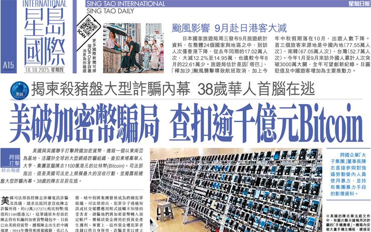 美破加密幣騙局 查扣逾千億元Bitcoin 揭柬殺豬盤大型詐騙內幕 38歲華人首腦在逃