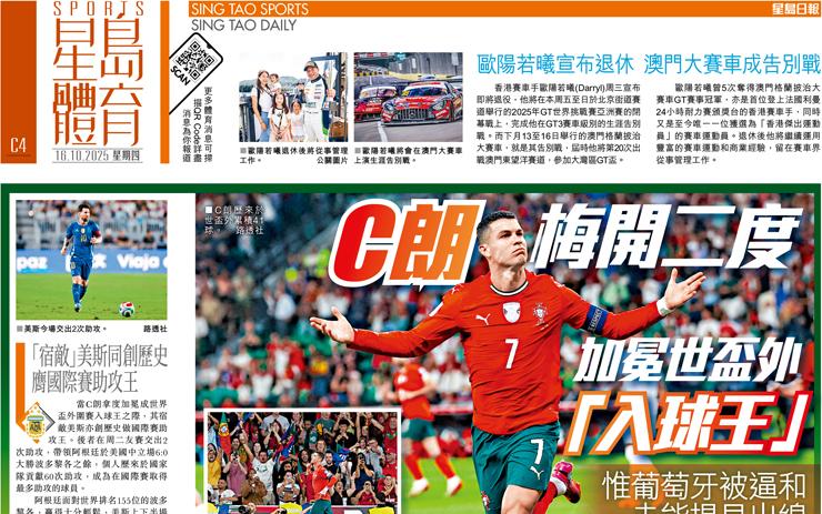 C朗梅開二度 加冕世盃外「入球王」 惟葡萄牙被逼和未能提早出線