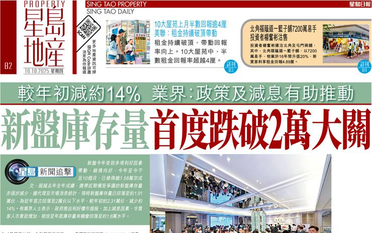新盤庫存量首度跌破2萬大關 較年初減約14%業界:政策及減息有助推動