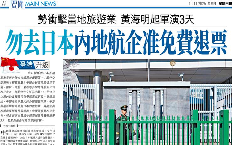 勿去日本內地航企准免費退票 勢衝擊當地旅遊業 黃海明起軍演3天