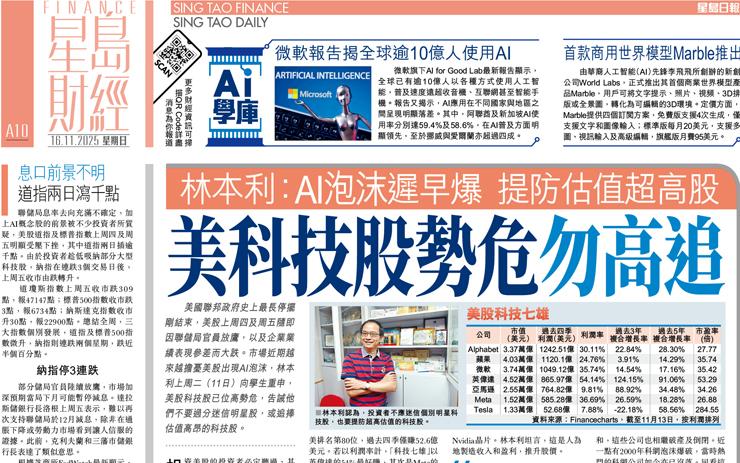美科技股勢危勿高追 林本利:AI泡沫遲早爆提防估值超高股