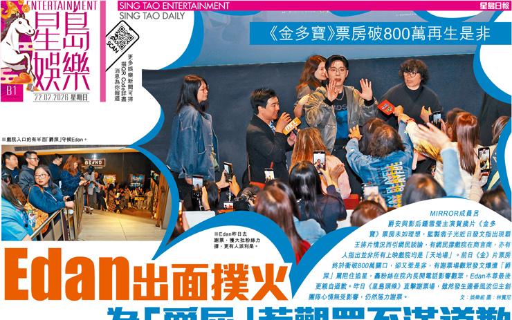 Edan出面撲火為「爵屎」惹觀眾不滿道歉 《金多寶》票房破800萬再生是非