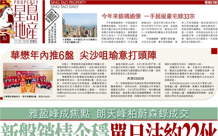 新盤銷情企穩單日沽約22伙 雅盈峰成焦點 朗天峰栢蔚森錄成交