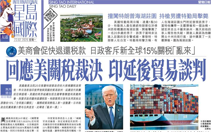 回應美關稅裁決 印延後貿易談判 美商會促快退還稅款 日政客斥新全球15%關稅「亂來」