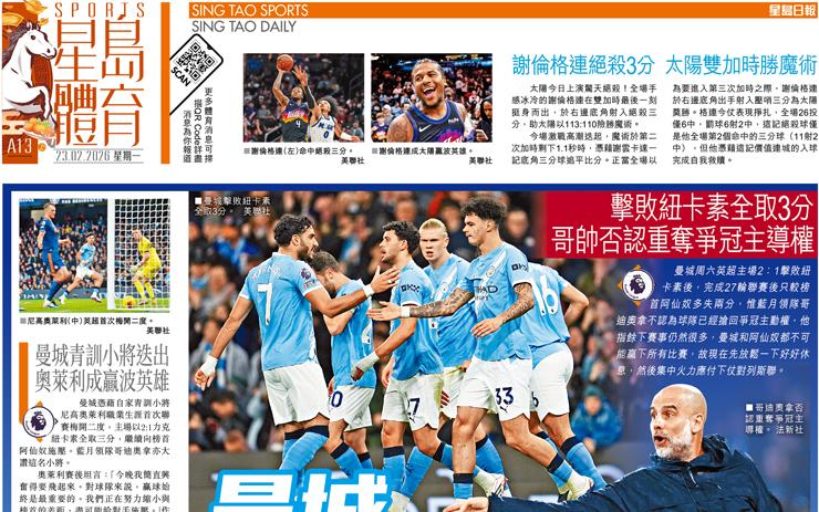 曼城進一步威脅阿仙奴 擊敗紐卡素全取3分 哥帥否認重奪爭冠主導權