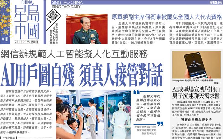 AI用戶圖自殘 須真人接管對話 網信辦規範人工智能擬人化互動服務