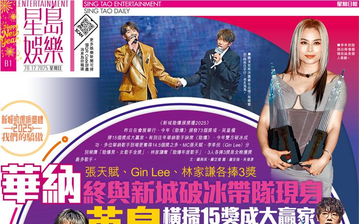 華納終與新城破冰帶隊現身 英皇橫掃15獎成大贏家 張天賦、Gin Lee、林家謙各捧3獎