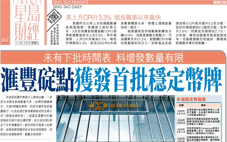 滙豐碇點獲發首批穩定幣牌 未有下批時間表 料增發數量有限