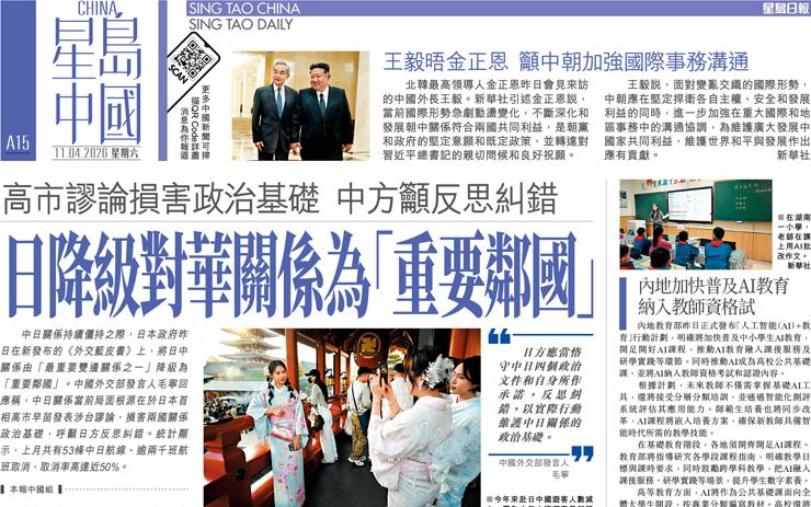 日降級對華關係為「重要鄰國」 高市謬論損害政治基礎 中方籲反思糾錯