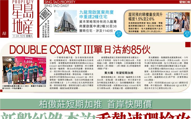 DOUBLE COAST III單日沽約85伙