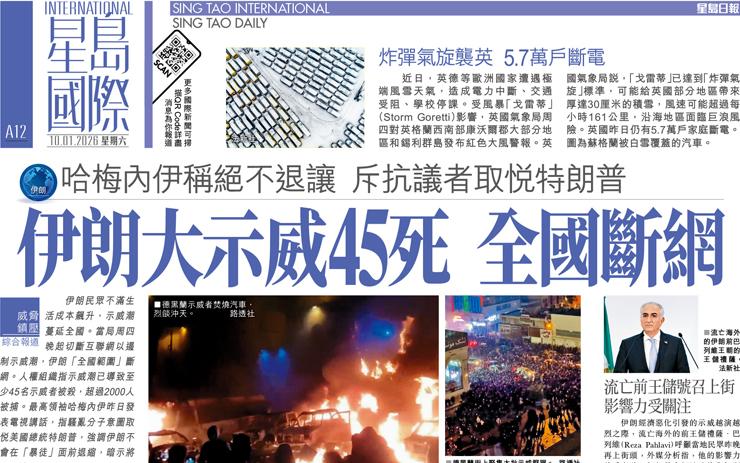伊朗大示威45死 全國斷網 哈梅內伊稱絕不退讓 斥抗議者取悅特朗普