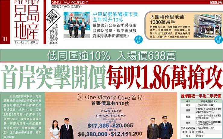 新盤銷情穩2天沽逾110伙 海灣I最受捧呎價高見1.91萬