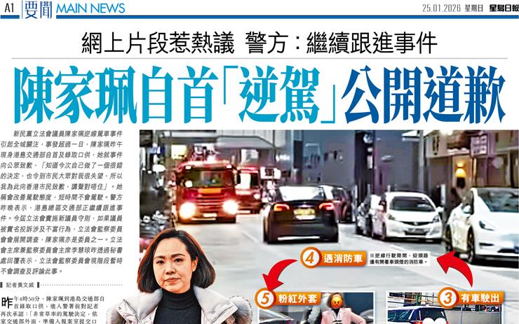 陳家珮自首「逆駕」公開道歉 網上片段惹熱議 警方:繼續跟進事件