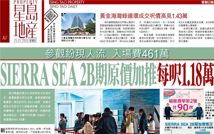 SIERRA SEA 2B期原價加推每呎1.18萬 參觀紛現人流 入場費461萬