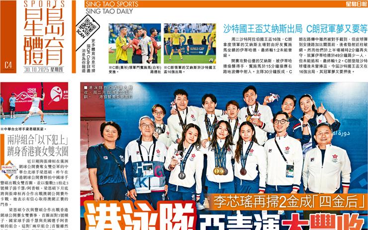 港泳隊 亞青運 大豐收 李芯瑤再掃2金成「四金后」