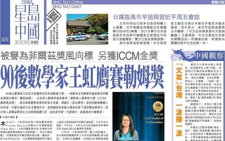 90後數學家王虹膺賽勒姆獎 被譽為菲爾茲獎風向標 另獲ICCM金獎