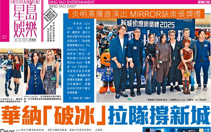 華納「破冰」拉隊撐新城 炎明熹獲邀演出 MIRROR缺席頒獎禮