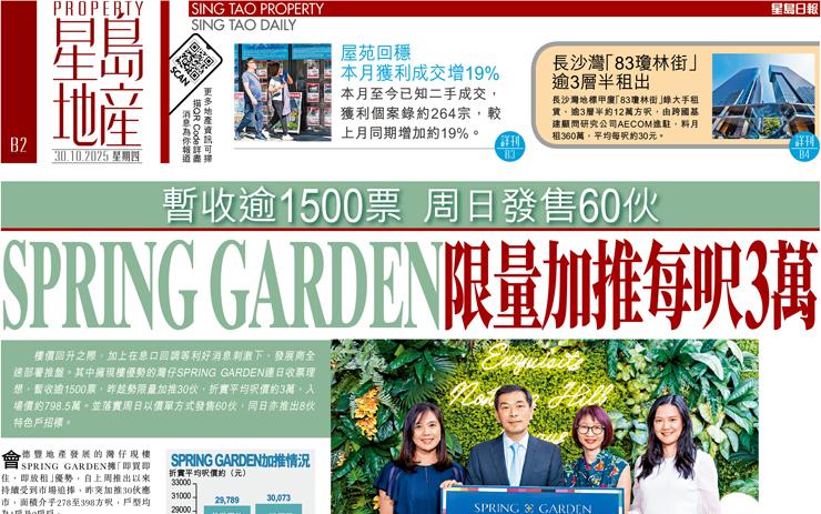 SPRING GARDEN限量加推每呎3萬 暫收逾1500票周日發售60伙