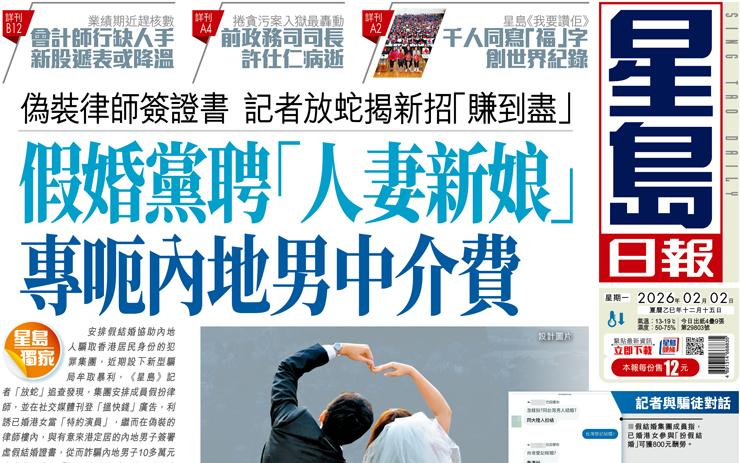 星島獨家 安排假結婚協助內地人騙取香港居民身份的犯罪集團,近期設下新型...