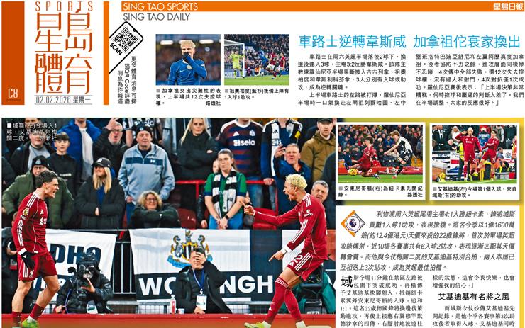 利物浦大勝紐卡素 域斯傳射漸匹配身價 同艾基迪基最合拍