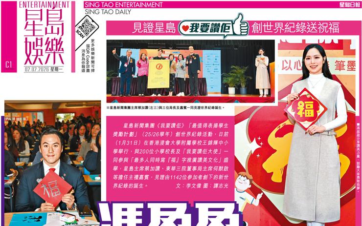 • 《我要讚佢》千人同寫「福」字創世界紀錄 蔡加讚:讓讚美成習慣 在校園社區發放正能量