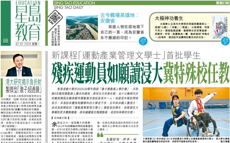 殘疾運動員如願讀浸大冀特殊校任教 新課程「運動產業管理文學士」首批學生