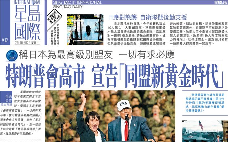 特朗普會高市 宣告「同盟新黃金時代」 稱日本為最高級別盟友一切有求必應