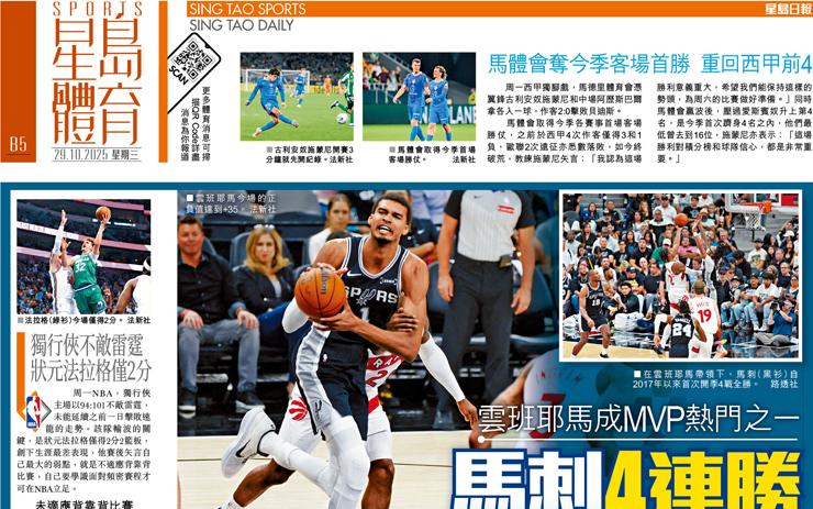 馬刺4連勝 近8年最佳開局 雲班耶馬成MVP熱門之一