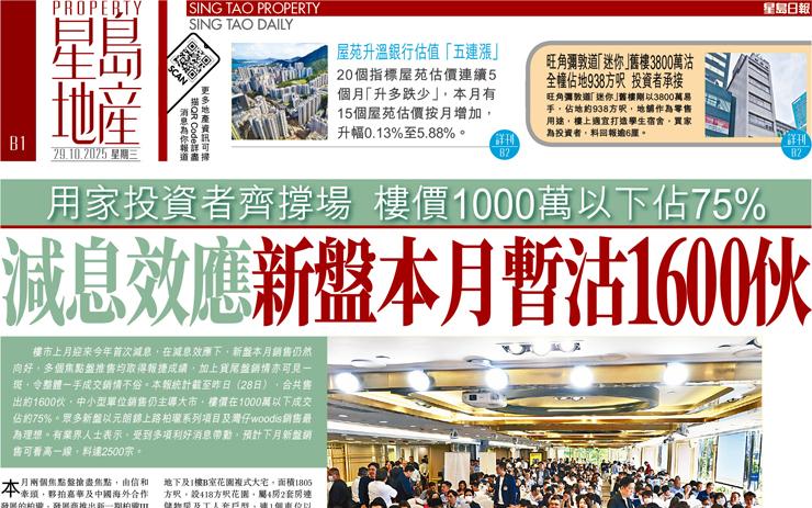 減息效應新盤本月暫沽1600伙 用家投資者齊撐場樓價1000萬以下佔75%