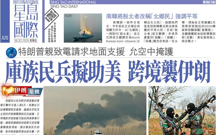 庫族民兵擬助美 跨境襲伊朗 特朗普親致電請求地面支援允空中掩護