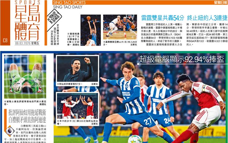 阿仙奴 領先7分 重奪爭標主動權 超級電腦顯示92.94%捧盃
