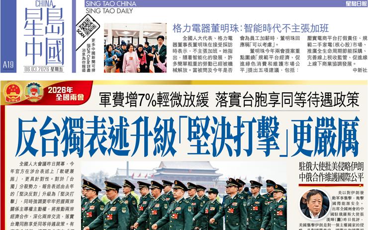 反台獨表述升級「堅決打擊」更嚴厲 軍費增7%輕微放緩 落實台胞享同等待遇政策