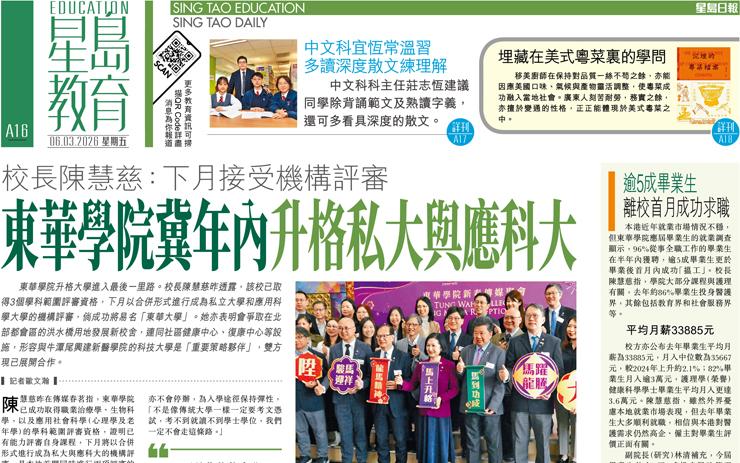 東華學院冀年內升格私大與應科大 校長陳慧慈:下月接受機構評審