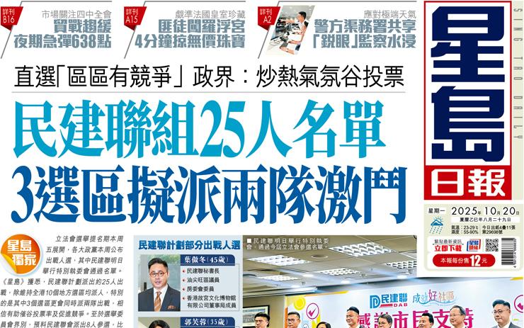 民建聯組25人名單 3選區擬派兩隊激鬥 直選「區區有競爭」 政界:炒熱氣氛谷投票