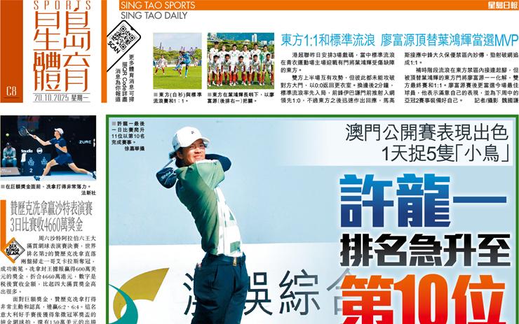 許龍一 排名急升至 第10位 澳門公開賽表現出色 1天捉5隻「小鳥」