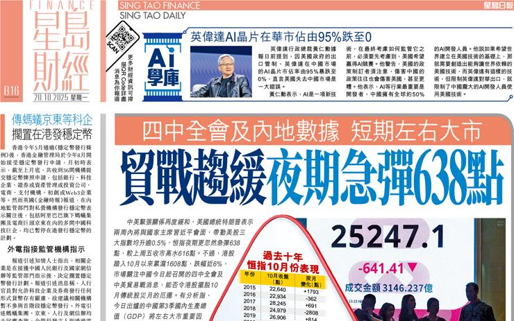 貿戰趨緩夜期急彈638點 四中全會及內地數據 短期左右大市