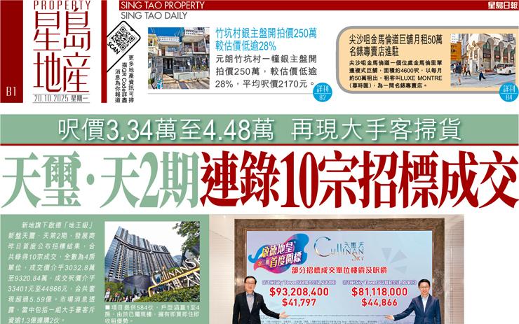 天璽·天2期連錄10宗招標成交 呎價3.34萬至4.48萬再現大手客掃貨