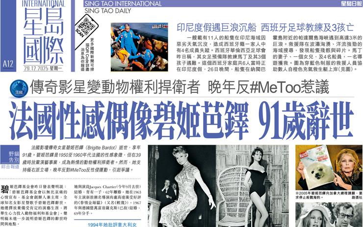 法國性感偶像碧姬芭鐸 91歲辭世 傳奇影星變動物權利捍衛者 晚年反#MeToo惹議