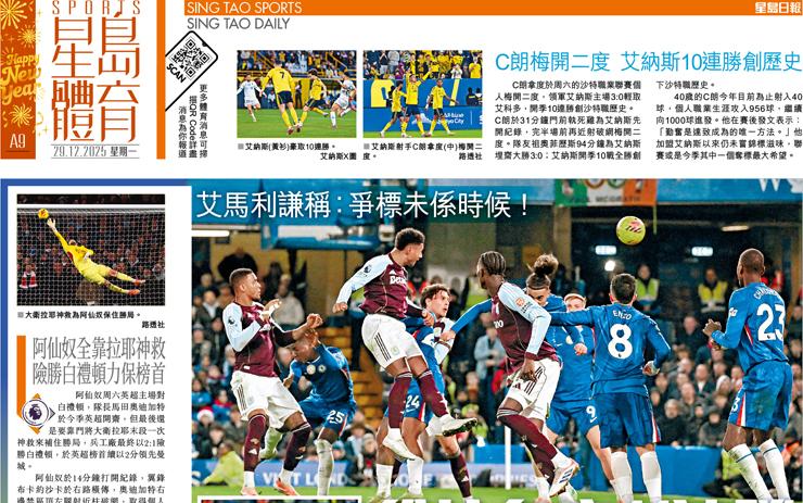 維拉各賽11連勝 進佔英超第3 艾馬利謙稱:爭標未係時候!